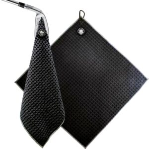 Magnetic Golf Towel with Carabiner Clip, Microfiber Waffle Design – Industrial Strength Magnet for Strong Hold to Golf Bags, Carts & Clubs – Black