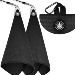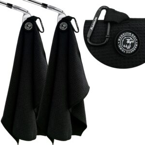 2-Pack Magnetic Golf Towel with Clip, Soft Microfiber Waffle Design – Industrial Strength Magnet for Strong Hold to Golf Bags, Carts & Clubs – Black